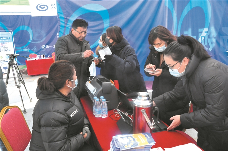圖為12月26日,在“民生拉薩 走進(jìn)社??ā敝黝}宣傳活動現(xiàn)場,市民在辦理社???。 記者 齊永昌攝