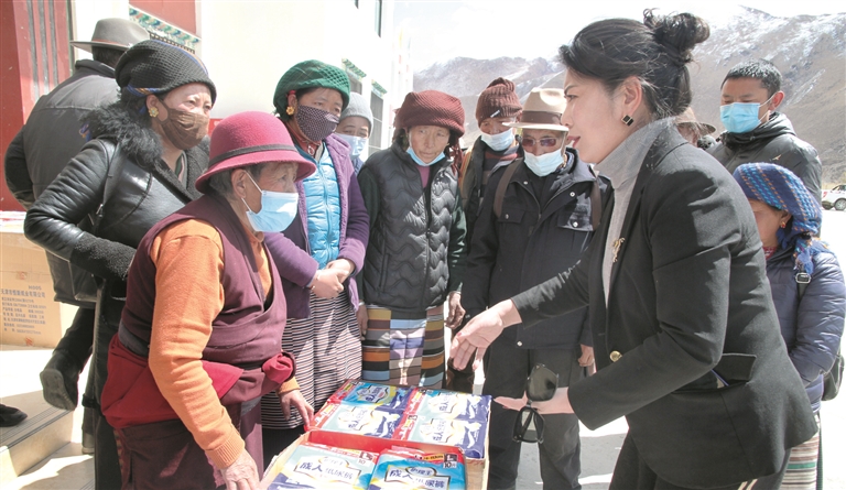 圖為發(fā)放護理用品現(xiàn)場。拉薩融媒通訊員 嘎 色 攝