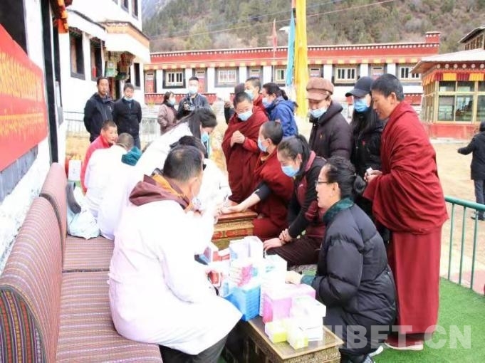 在古覺(jué)拉康,醫(yī)務(wù)人員為寺廟僧尼測(cè)血壓、診脈、健康咨詢(xún)、健康知識(shí)宣講,免費(fèi)發(fā)放常用西藥、藏藥20余種及糖尿病、高血壓、肺結(jié)核等慢性疾病與新冠肺炎疫情防控宣傳資料;細(xì)致講解常見(jiàn)病、多發(fā)病的預(yù)防知識(shí);針對(duì)不同病癥和個(gè)體差異提出合理的診療建議和治療方案。同時(shí),還為僧尼發(fā)放了毛巾、牙膏、洗潔精等衛(wèi)生用品。