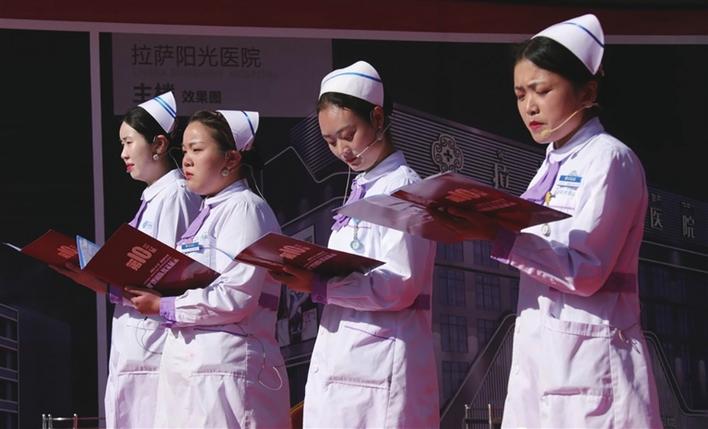 記者在現(xiàn)場了解到,2011年至今,拉薩陽光醫(yī)院已連續(xù)舉辦10屆“5·12護(hù)士節(jié)”慶祝活動(dòng)。本次活動(dòng)結(jié)合了情景劇、獨(dú)唱、歌舞、護(hù)理技能比賽等多種形式表演,將專業(yè)技能的展示與日常工作中的情景完美結(jié)合。其中,表演者在詩朗誦節(jié)目《致南丁格爾》中,用飽含深情的語言表達(dá)了對(duì)南丁格爾奉獻(xiàn)精神的無限感念與敬佩。在技能展示環(huán)節(jié),護(hù)理人員在模擬場景中,演示了日常工作的護(hù)理技能,向大家展示出護(hù)理人員們認(rèn)真、負(fù)責(zé)的工作狀態(tài)。