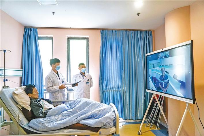 圖為察隅、深圳兩地醫(yī)生在病房開(kāi)展遠(yuǎn)程會(huì)診。記者 益西加措 攝