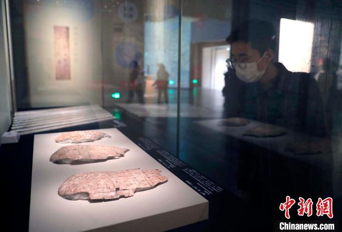 觀眾在觀看展出的殷墟龜甲。 王磊 攝