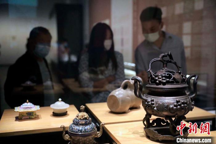 觀眾在觀看展出的銅熏爐等中藥器皿?!⊥趵?攝