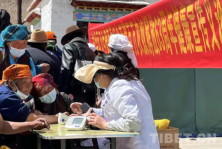 圖為西藏自治區(qū)4家自治區(qū)級醫(yī)院專家在拉薩市林周縣強嘎鄉(xiāng)為當(dāng)?shù)厝罕娏x診