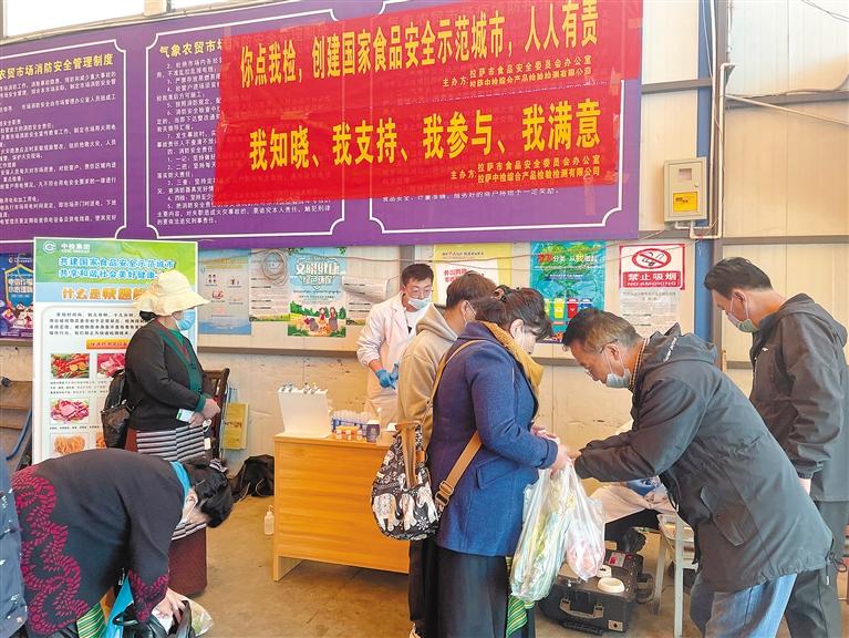 為進(jìn)一步擴(kuò)大拉薩創(chuàng)建國家食品安全示范城市的知曉率和參與度,近日,拉薩市市場監(jiān)管局組織兩家食品快檢站在八一農(nóng)貿(mào)市場、氣象局農(nóng)貿(mào)市場開展“你點(diǎn)我檢”活動(dòng),免費(fèi)為市民提供蔬菜水果類、畜肉蛋類和水產(chǎn)品、肉制品、米面制品、豆制品等5大類農(nóng)殘獸殘、食品添加劑超標(biāo)情況快速檢測快檢服務(wù),檢測食用農(nóng)產(chǎn)品50批次,檢測結(jié)果反饋率100%。參與市民達(dá)300人次,發(fā)放宣傳冊(品)400余份,讓廣大市民就近就便實(shí)現(xiàn)食品安全檢驗(yàn)。