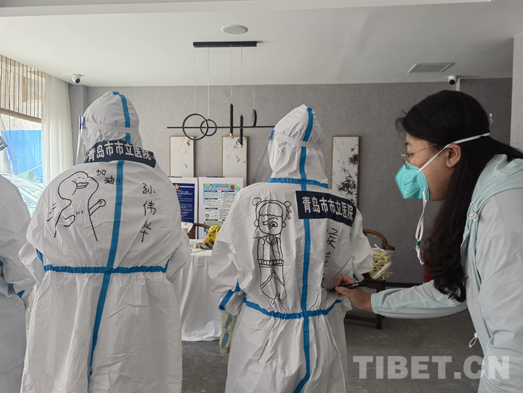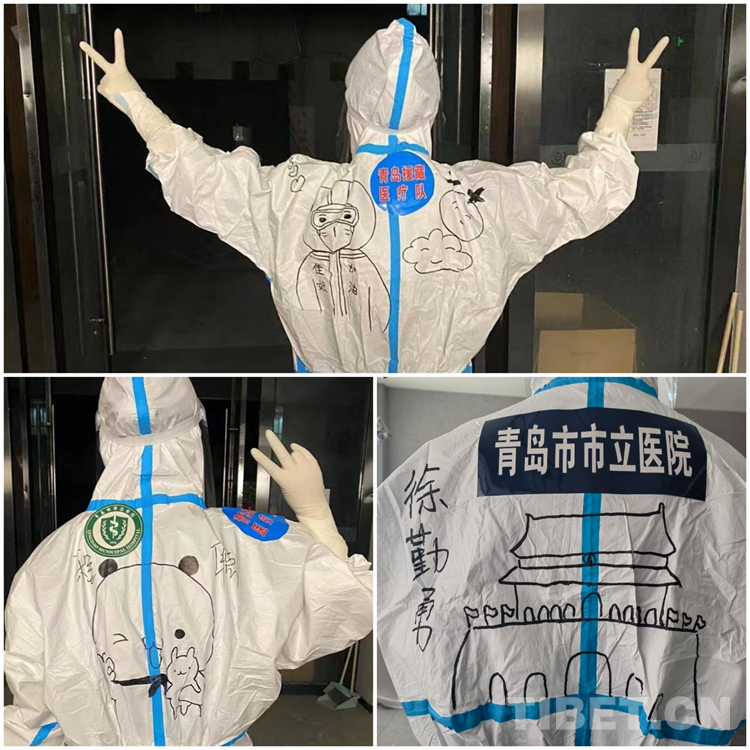 中國西藏網(wǎng)訊 青島援藏醫(yī)療隊自8月17日進藏以來, 隊員們無論工作多累多難、高原反應(yīng)有多難受,都沒有一句怨言,依然堅持在西藏自治區(qū)日喀則市戰(zhàn)“疫”一線。工作之余,來自青島市市立醫(yī)院本部ICU的鐘翔宇發(fā)揮出了她的“隱藏技能”——在醫(yī)療隊的“大白”身上畫上漫畫,用表情包背到身上的方式給隊友們加油鼓勁兒。身著漫畫“戰(zhàn)袍”的隊員們斗志昂揚,朝氣蓬勃,互相鼓勵幫助,完成了一天天的工作任務(wù)。而這些古靈精怪的漫畫,在戰(zhàn)“疫”一線也成了一道靚麗的風(fēng)景線。(中國西藏網(wǎng) 記者/次旦拉姆 由桑珠孜區(qū)融媒體中心供稿)