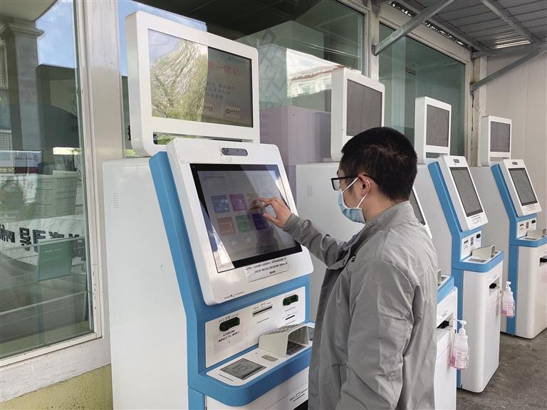 拉薩市民正在使用醫(yī)院內的一體機掛號。記者 趙越 攝