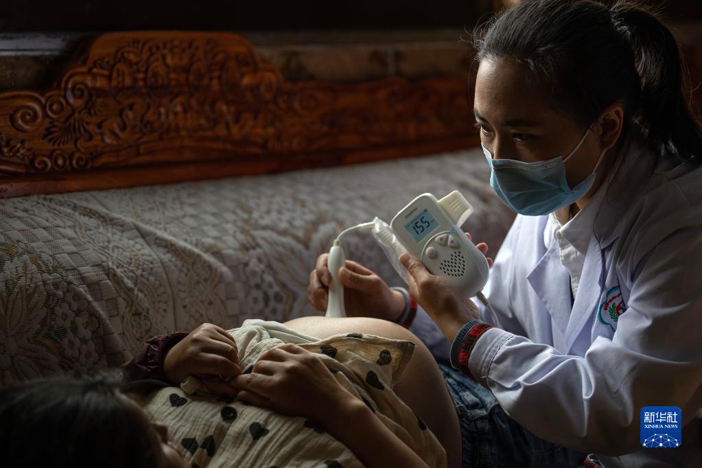 6月12日,陳冰(右)在為扎西央宗進(jìn)行產(chǎn)檢。新華社記者 費茂華 攝