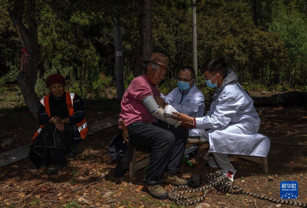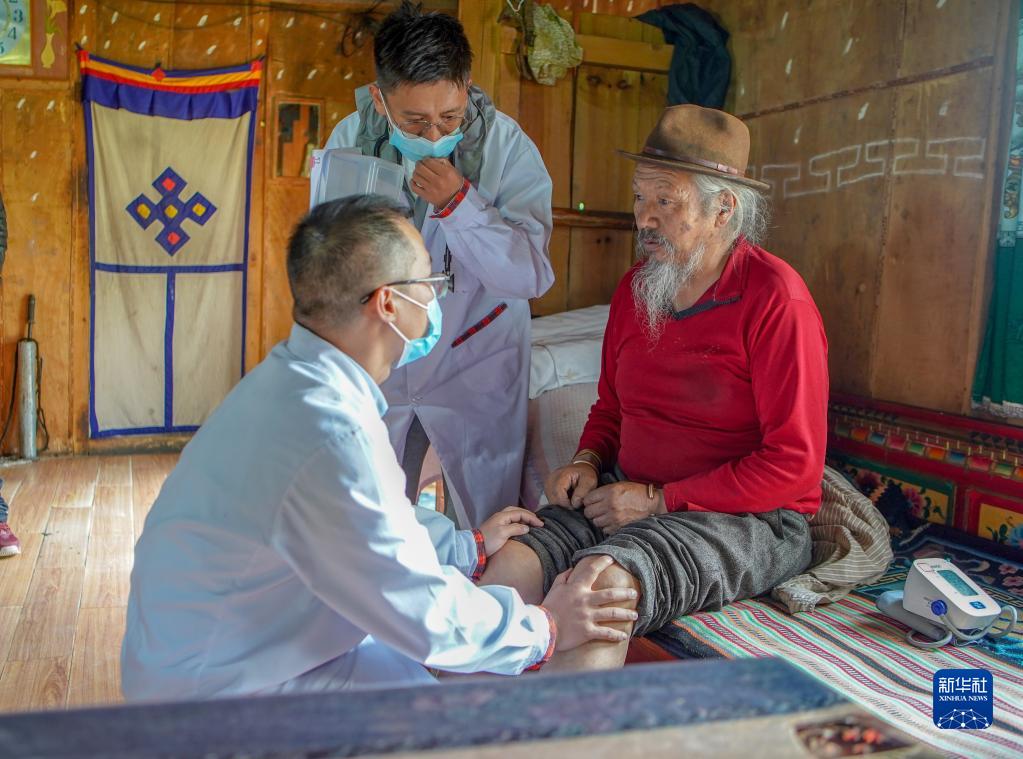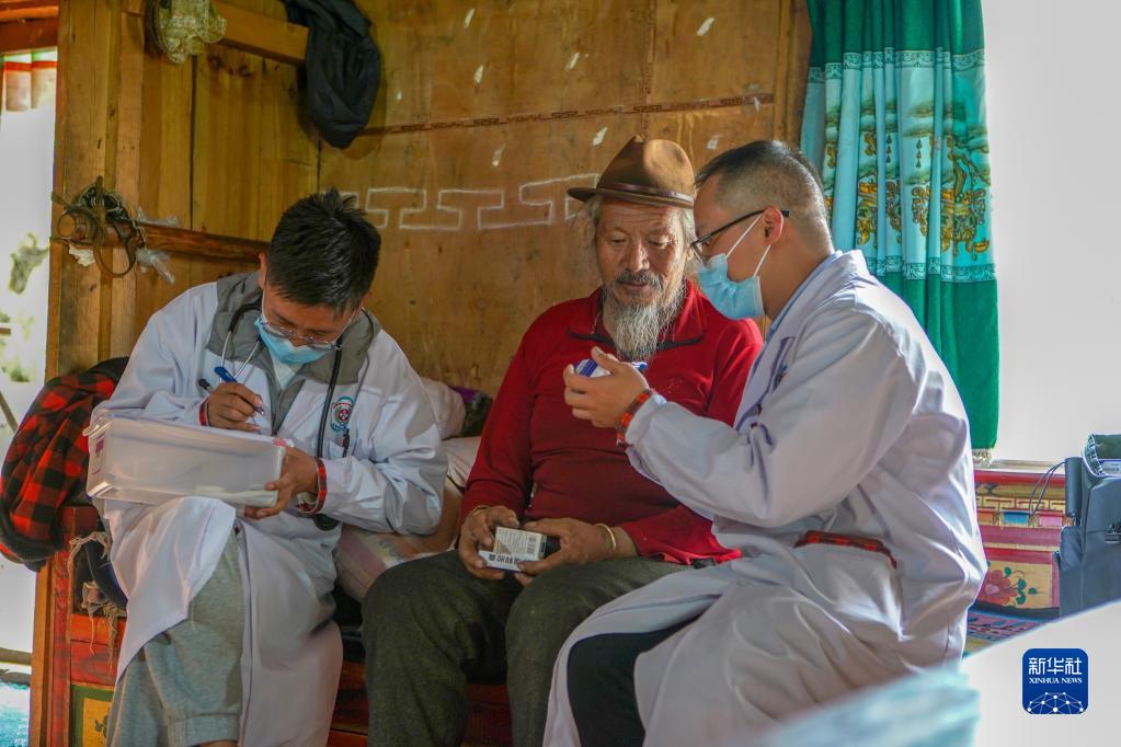6月12日,王振疆(右)為吞不絨村89歲的村民娘姑進(jìn)行檢查。新華社記者 費茂華 攝