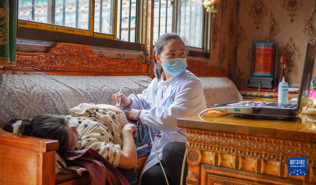6月12日,王彤旭在吞不絨村為珠杰診治。新華社記者 費茂華 攝
