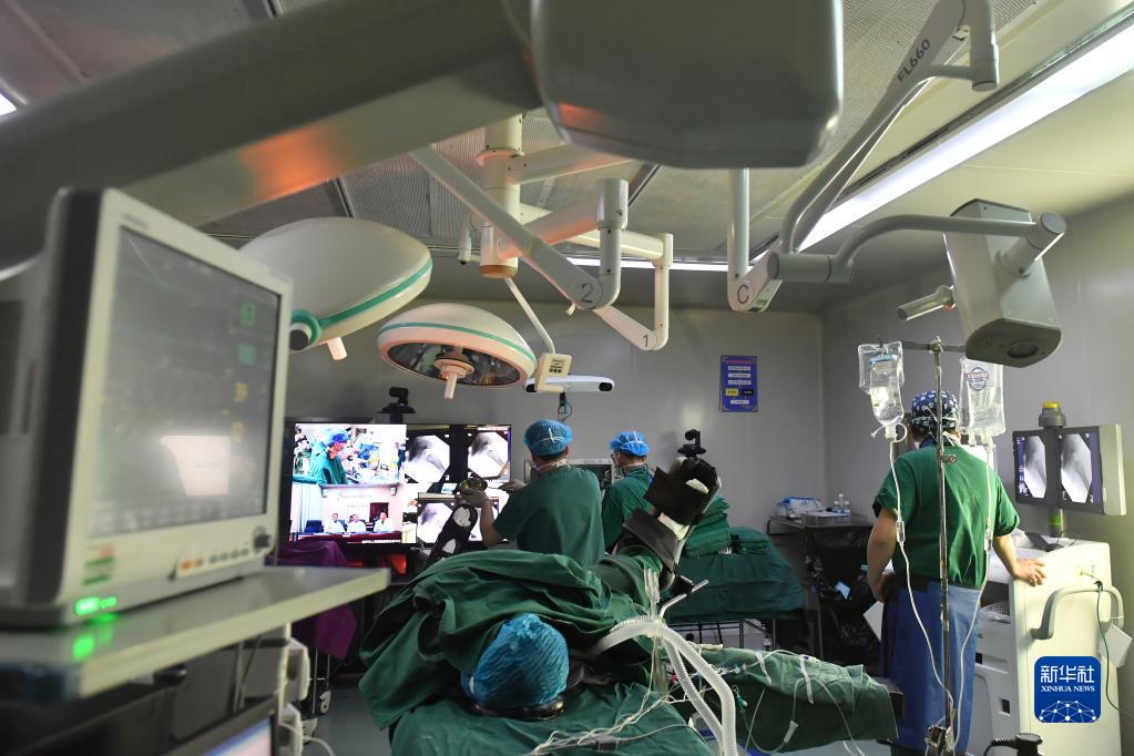 拉薩市人民醫(yī)院骨科醫(yī)生在北京積水潭醫(yī)院專家遠程指導下使用骨科機器人開展骨科手術(2021年4月19日攝)。新華社記者 孫瑞博 攝