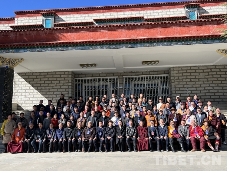 圖為參加《藏醫(yī)藥文獻(xiàn)大全》(全206冊)首發(fā)暨贈(zèng)書儀式的嘉賓合影留念 攝影:德吉卓瑪