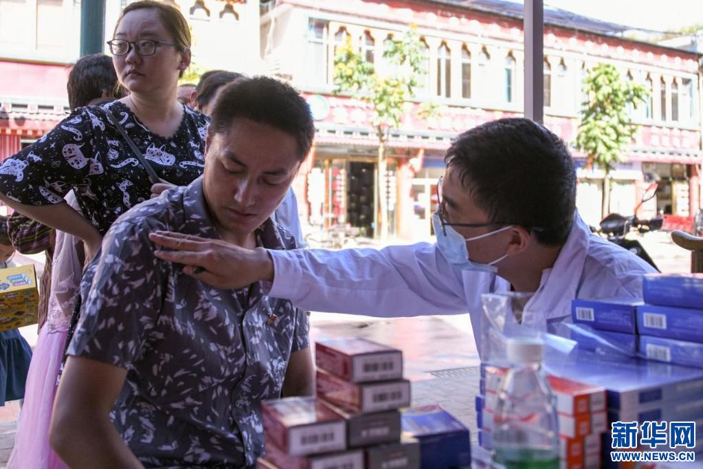 10月1日,李玉希醫(yī)生為東阿旦增做檢查。(受訪者供圖)