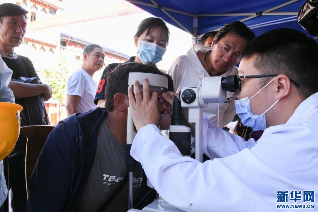 查診、清理、沖洗、上眼藥、包扎……一套麻利的動(dòng)作下來(lái),困擾了恰多次仁好幾天的眼睛疼痛,終于得到解決——原來(lái)是因?yàn)檠劢悄ど嫌幸粔K微小的鐵屑。