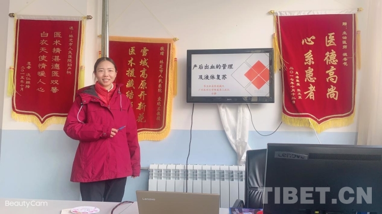 圖為萬(wàn)靜給林芝市人民醫(yī)院婦產(chǎn)科同事進(jìn)行培訓(xùn)