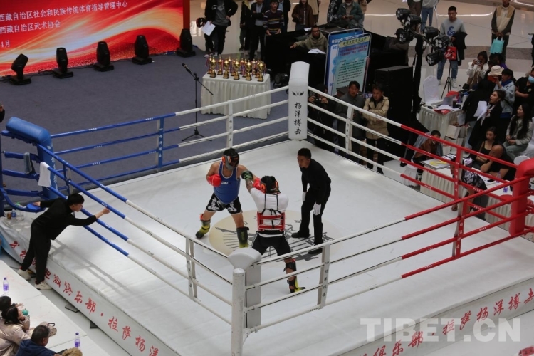 中國(guó)西藏網(wǎng)訊 4月15日,2023年西藏自治區(qū)全民健身系列活動(dòng)(自由搏擊)在拉薩市舉行。擂臺(tái)上紅藍(lán)雙方使出各自“武學(xué)”本領(lǐng),激情比賽。引得擂臺(tái)下觀眾血脈噴張,喝彩聲連綿不斷?! ?/p>