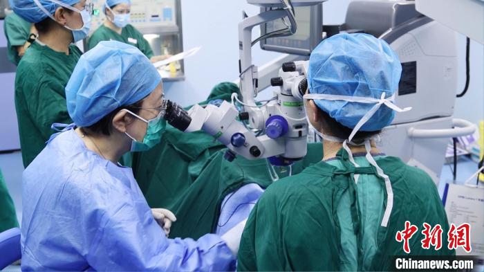 黎曉新總院長為西藏區(qū)醫(yī)生開展手術(shù)帶教。 廈門眼科中心供圖