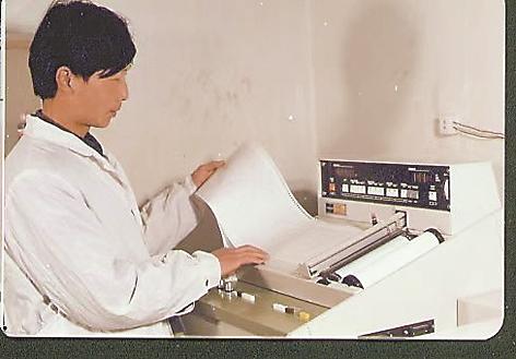 1989年檢驗人員操作第一臺大型精密儀器紅外分光光度計。(由自治區(qū)食品藥品檢驗研究院供圖)