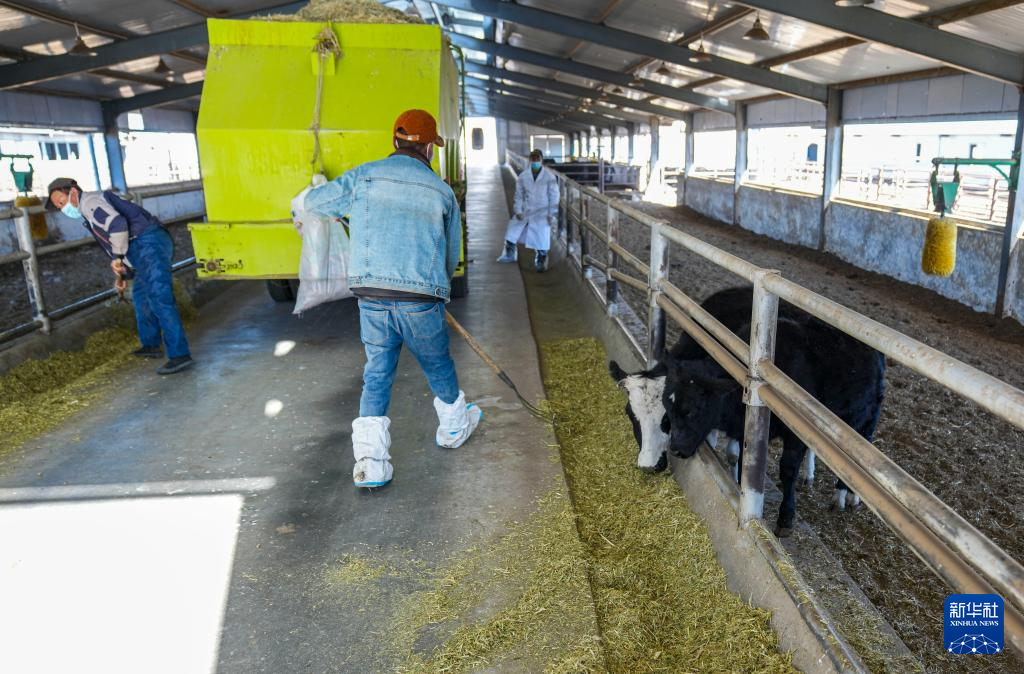 12月3日,西藏自治區(qū)動(dòng)物疫病預(yù)防控制中心(區(qū)畜牧總站)曲水實(shí)驗(yàn)站的工作人員在給克隆樟木牛母犢(右)喂食。新華社記者 丁增尼達(dá) 攝