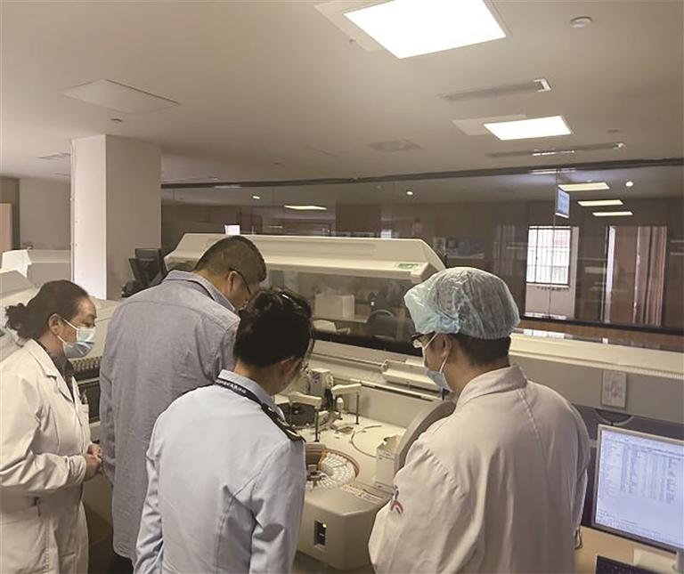 執(zhí)法人員對醫(yī)療器械進行檢查。(資料圖)