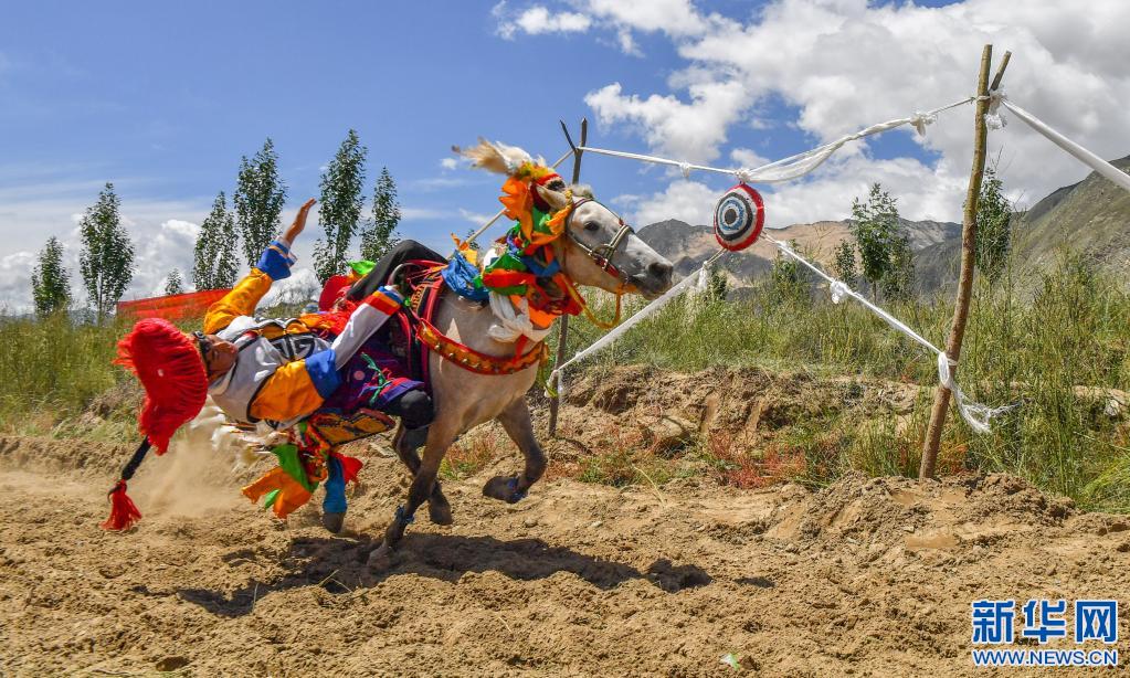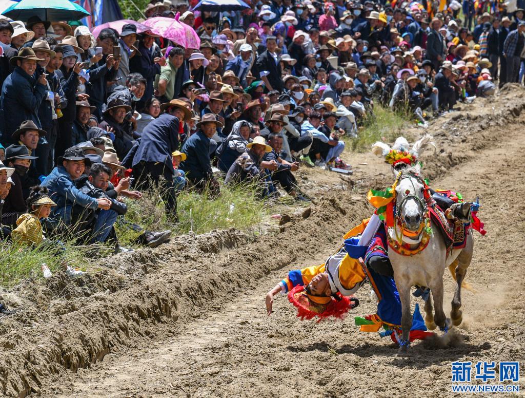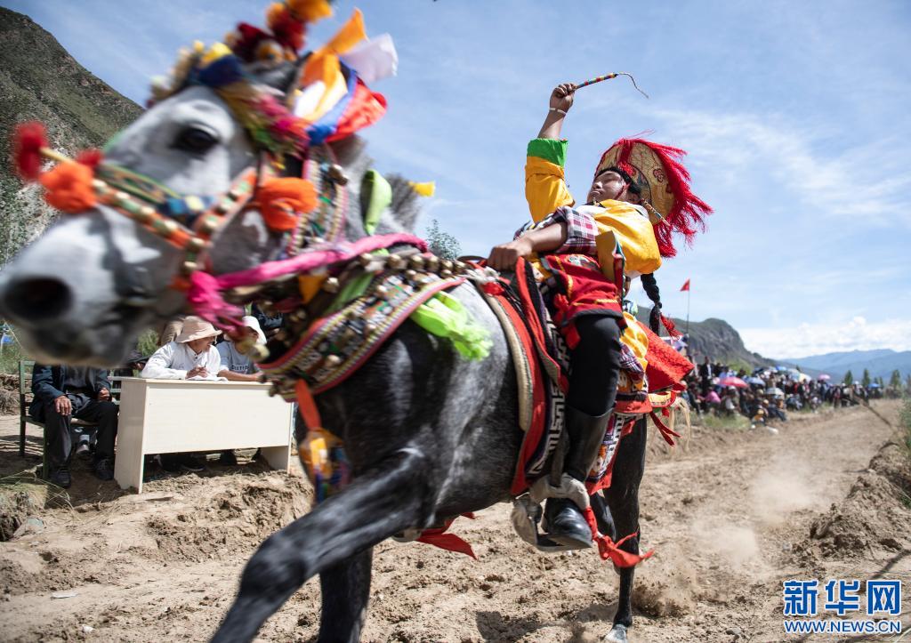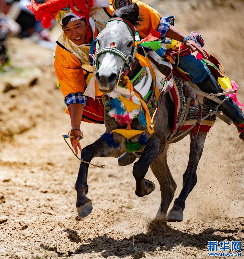 當(dāng)日,位于雅魯藏布江畔山谷里的西藏山南市貢嘎縣昌果鄉(xiāng)崗旦村舉行一年一度的賽馬,迎接即將到來的收獲季節(jié)。