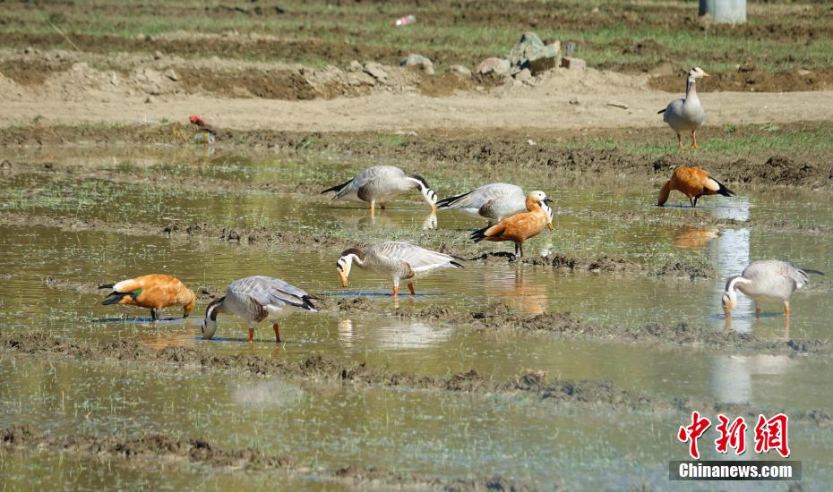 藏南谷地迎來越冬候鳥 斑頭雁、赤麻鴨等在碧水藍天間嬉戲覓食