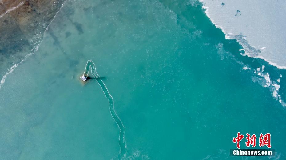 12月21日,航拍冬日青海湖。冬日青海湖周圍的積雪將湛藍的湖面包裹起來,不斷上凍的湖面猶如一面鏡子。[詳細]