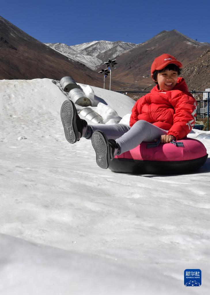近日,西藏拉薩郊區(qū)一游樂場(chǎng)開設(shè)冰雪運(yùn)動(dòng)體驗(yàn)場(chǎng),讓更多人感受冰雪的樂趣。