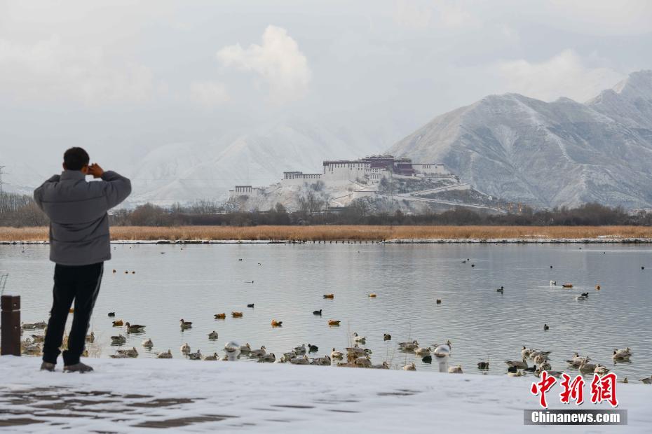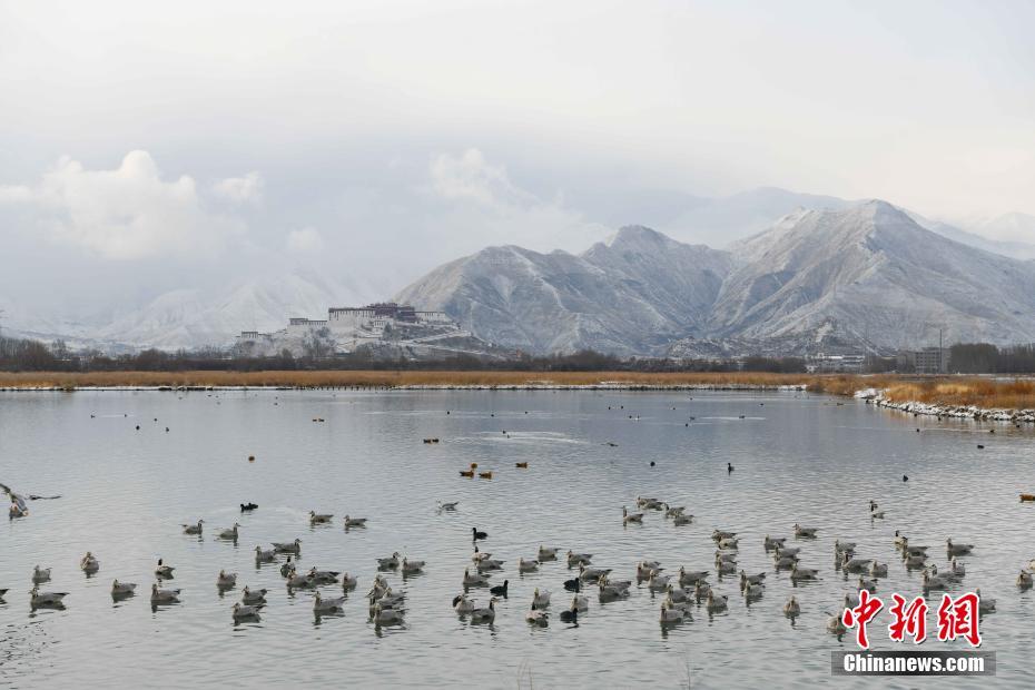 2月21日,從拉魯濕地遠(yuǎn)眺布達(dá)拉宮。當(dāng)日,西藏拉薩市迎來降雪,雪后的拉薩城區(qū)和周圍群山白雪皚皚,風(fēng)景如畫。 中新社記者 貢嘎來松 攝