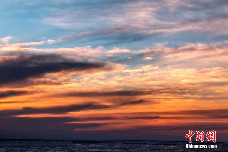 初春時節(jié),“高原藍寶石”青海湖還未開湖,青海湖二郎劍景區(qū)里,霞光萬道,宛若仙境。晚霞夾雜在清澈透明的藍天里,或淡粉色,或玫瑰紅,讓青海湖有了動感美,快來和小編一起領略這醉人景色吧。趙海梅 攝