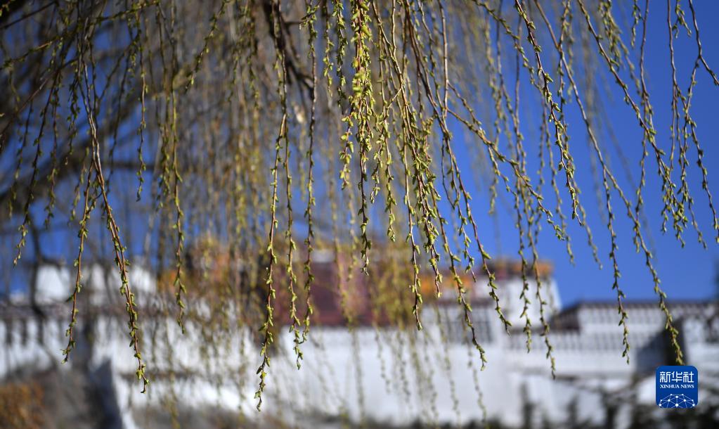 這是3月20日在布達(dá)拉宮廣場拍攝的柳枝。新華社記者 覺果 攝