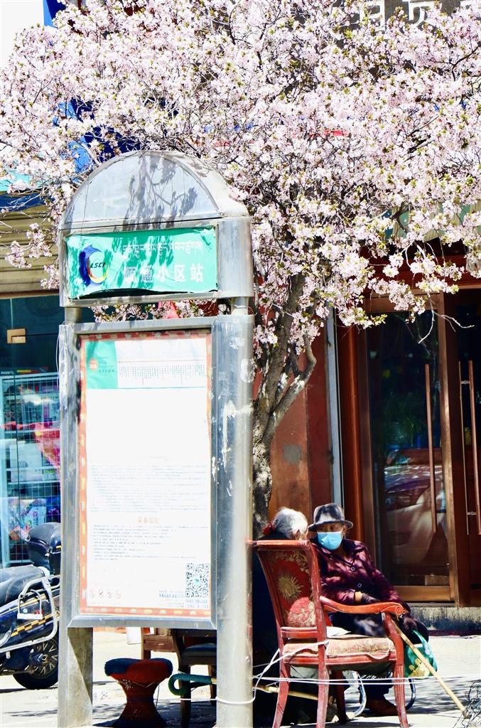 住在拉薩靠北邊的市民同樣能一飽眼福。娘熱北路兩側(cè)的榆葉梅已全部綻放,而緊鄰娘熱路的慈松塘中路和慈松塘東路更是一片春花爛漫的美好景象。慈松塘中路和北路的榆葉梅栽種較為密集,成團(tuán)成簇的淡粉色花朵擠在枝頭,樹(shù)下乘涼的老奶奶、樹(shù)邊??康墓卉?chē),在花朵的加持下,隨手一拍便是故事感極強(qiáng)的畫(huà)面。