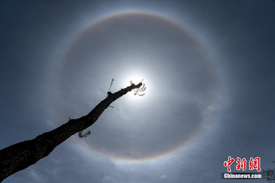 4月20日,西藏拉薩天空中出現(xiàn)日暈。中新社記者 江飛波 攝