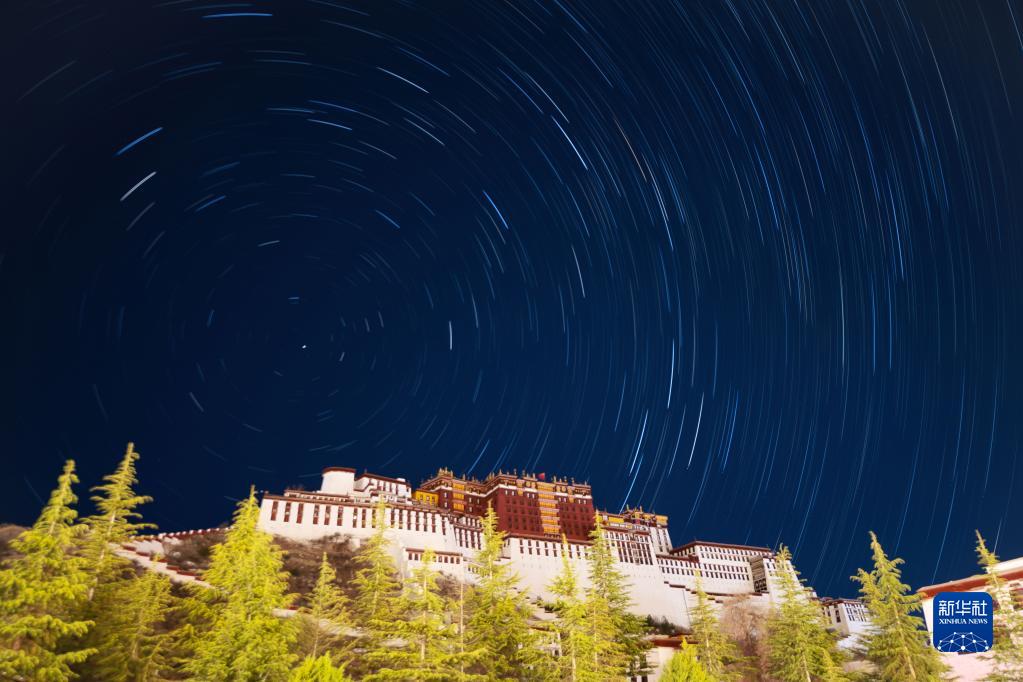 5月4日在拉薩市布達(dá)拉宮前拍攝的星軌(合成照片)。新華社記者 周荻瀟 攝