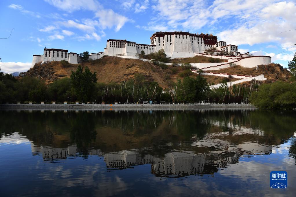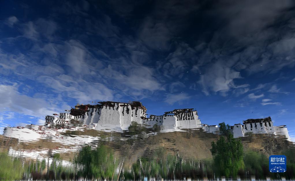水中的布達拉宮倒影(5月7日攝)。新華社記者 覺果 攝