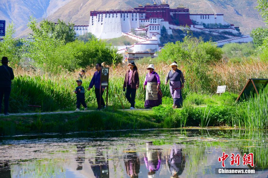 5月24日,拉薩市民沿拉魯濕地步道觀賞游玩。拉魯濕地國(guó)家級(jí)自然保護(hù)區(qū)位于西藏拉薩市北郊,被譽(yù)為“拉薩之肺”。 中新社記者 貢嘎來松 攝