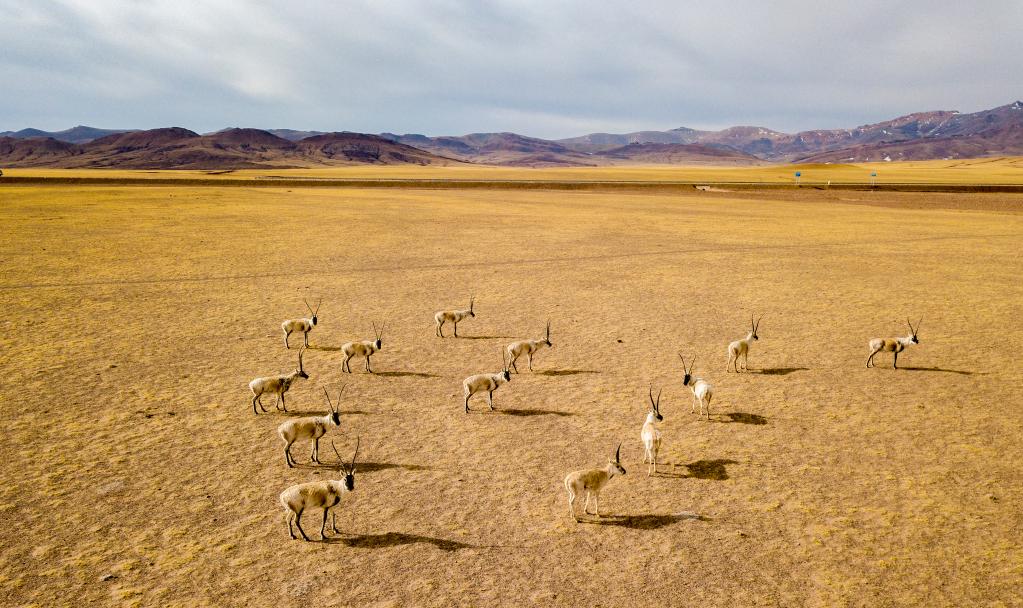 這是在阿里地區(qū)改則縣拍攝到的藏羚羊(4月13日攝,無人機(jī)照片)。公報顯示,藏羚羊種群數(shù)量由20世紀(jì)最低谷時的7萬余只增至30萬余只。新華社記者 姜帆 攝