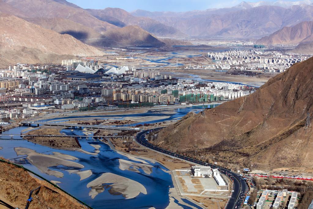 拉薩河從城區(qū)蜿蜒而過(3月2日攝)。新華社記者 姜帆 攝
