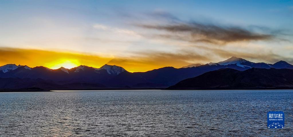 這是夕陽下的羊卓雍錯(cuò)(1月1日攝)。新華社記者 姜帆 攝