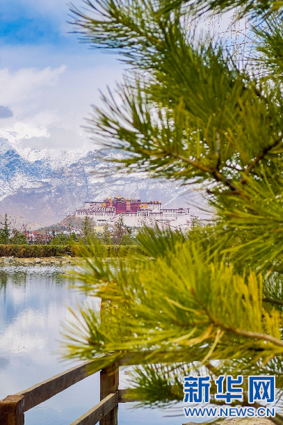 3月30日,在拉薩市南山公園拍攝的雪后布達(dá)拉宮。新華網(wǎng) 柑丹鴦琦攝