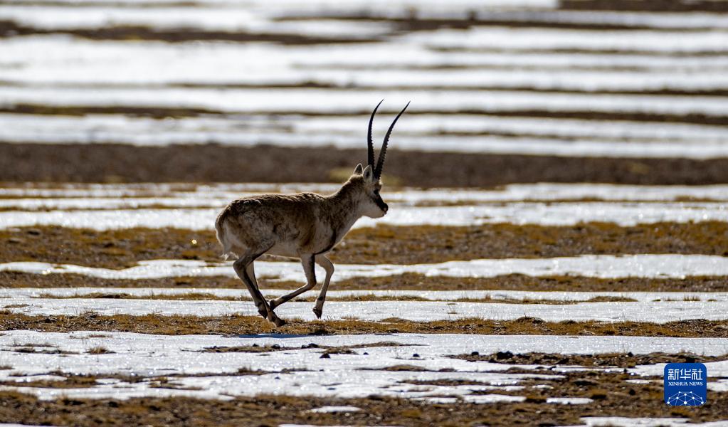 這是在羌塘國家級自然保護(hù)區(qū)那曲市雙湖縣區(qū)域內(nèi)拍攝到的藏原羚(4月16日攝) 。新華社記者 格桑邊覺 攝
