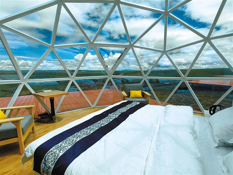圖為夯錯(cuò)濕地暗夜星空景區(qū)內(nèi)設(shè)置的觀景設(shè)備(8月25日攝)。新華網(wǎng)發(fā) 蘇思源 攝