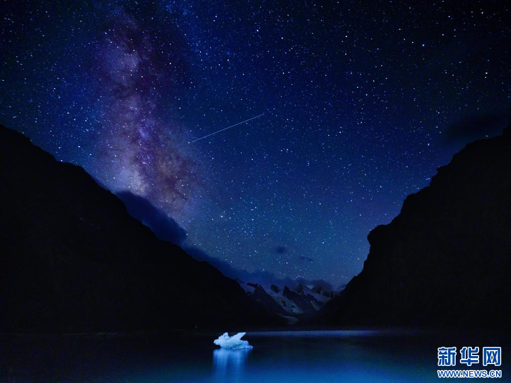 這是在三色湖中的黑湖旁邊拍攝的星空(9月16日攝)。新華社發(fā)(文濤 攝)