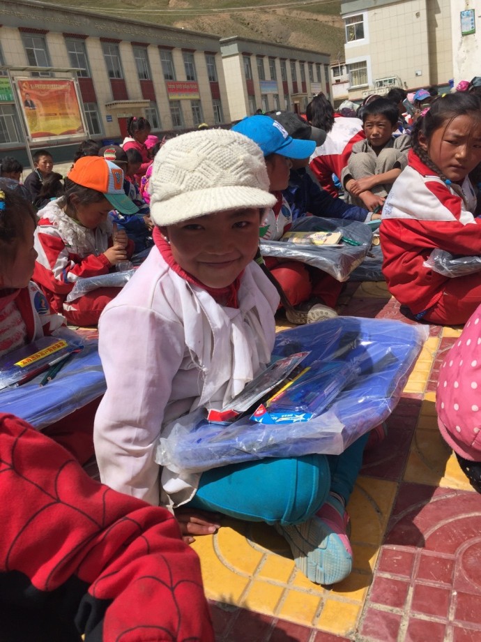 一天,我看到一個特別可愛的小女孩放學回家,就想到了自己的女兒,忍不住上前抱住她。我看見小女孩兒背著破舊的布包,就問道:“你背過新書包嗎?”她說:“我才三年級,阿媽說等我再大些就能有新書包背了。”看著這個可愛的孩子,想到了遠在成都不到2歲的女兒。自己總是省吃儉用,想把最好的都給她。再看看眼前這個孩子,我的眼睛濕潤了……我下定決心,一定要讓這些沒有背上過新書包的孩子們在新學期有新的書包和文具。
