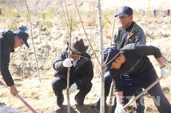 圖為拉薩市曲水縣才納鄉(xiāng)植樹(shù)造林現(xiàn)場(chǎng) 攝影:趙二召