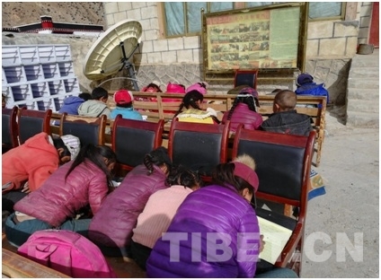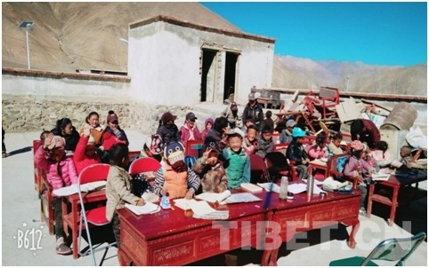 1月份,正是西藏最冷的時(shí)候,在寒冷的冬季輔導(dǎo)孩子們學(xué)習(xí)不是一件容易的事情。還好西藏冬日的陽(yáng)光在中午的時(shí)候是暖和的,工作隊(duì)就利用中午光照充足、比較暖和的時(shí)間,將學(xué)生們集中到各村村委大院進(jìn)行輔導(dǎo)學(xué)習(xí)活動(dòng)。