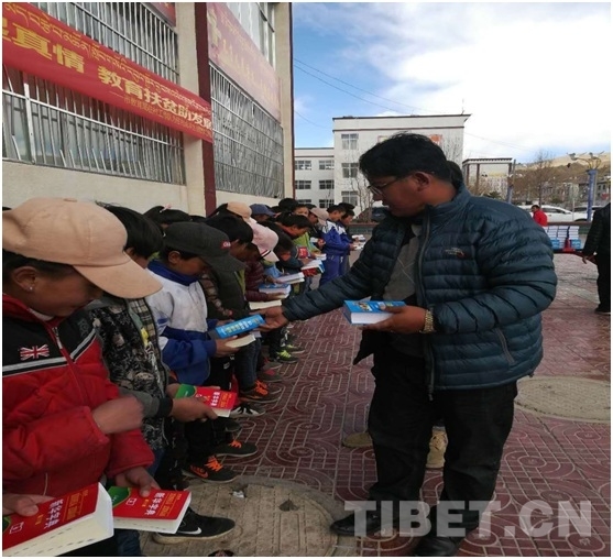 除了開辦寒假補(bǔ)習(xí)班,駐村工作隊(duì)還為各駐村點(diǎn)的學(xué)生爭(zhēng)取到了價(jià)值近2萬(wàn)元的《現(xiàn)代漢語(yǔ)詞典》、《新華字典》等學(xué)習(xí)用品,并分赴昂仁縣中學(xué)、亞木鄉(xiāng)中心小學(xué)等,親手送到孩子們手上。