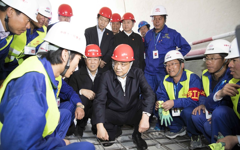 7月26日,李克強(qiáng)總理在山南市川藏鐵路拉林段施工現(xiàn)場(chǎng)。來源:中國(guó)政府網(wǎng)