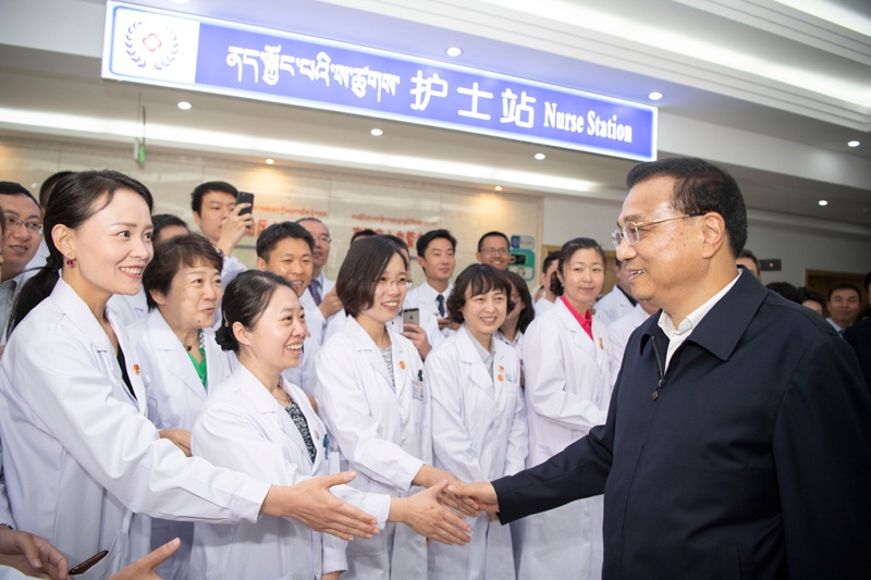 7月27日,李克強(qiáng)總理來到西藏自治區(qū)人民醫(yī)院,看望慰問援藏醫(yī)護(hù)人員。來源:中國(guó)政府網(wǎng)