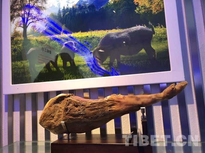 圖為展覽館內(nèi)擺放的藏豬火腿